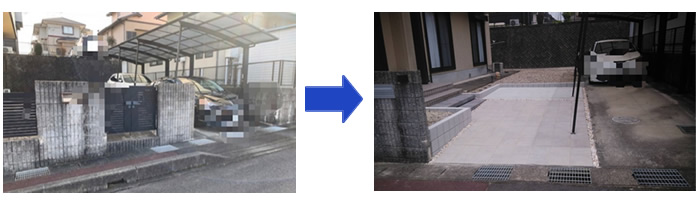 門と塀の一部を取り壊し、プラス1台分の駐車場を確保しました。